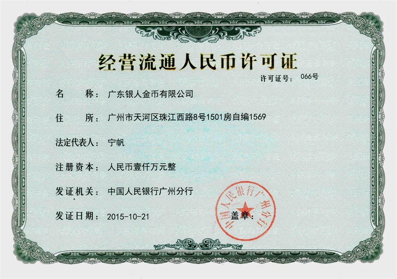 持有央行颁发的《经营流通人民许可证》。