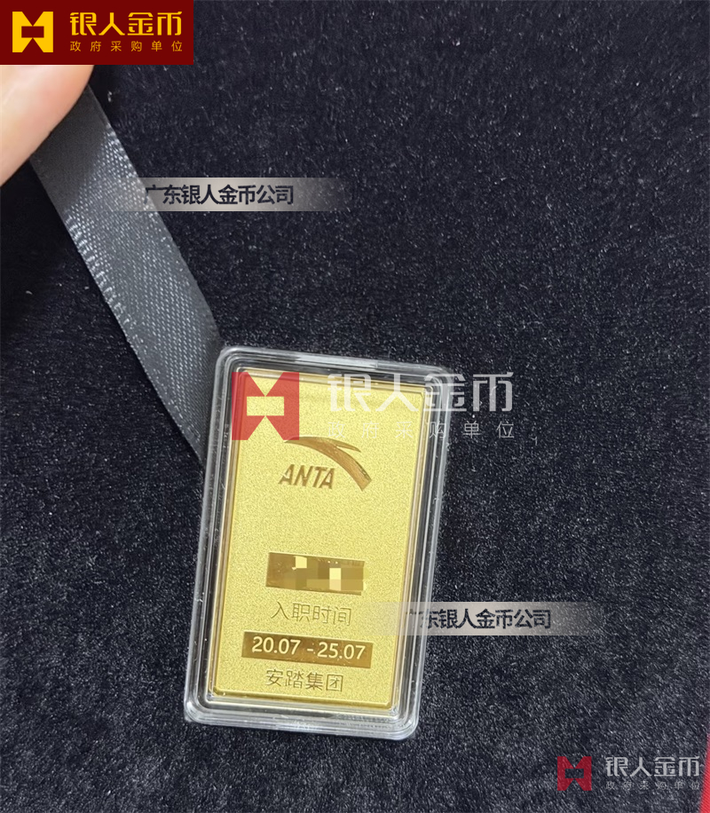 福建安踏公司董事长功勋金章定制_集团突出贡献奖纪念版金条定制_突出贡献奖金牌定制_定制版金条_定制纯金金条
